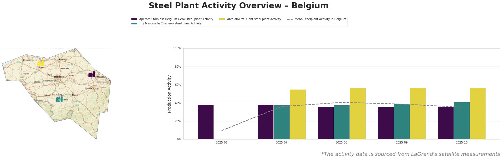 In June 2025, the mean steel plant activity in Belgium reached a low of 10%, but by July, this significantly climbed to 36%. The ArcelorMittal Gent steel plant showed the highest activity, reaching a peak of 57% throughout September and into October. Conversely, Aperam’s activity dipped by 2% from July to October. Notably, the shifts coincide with the increased visibility of ArcelorMittal’s initiatives in sustainable steelmaking, particularly the developments reported in Construction of the Baekeland substation for ArcelorMittal has begun in Belgium.