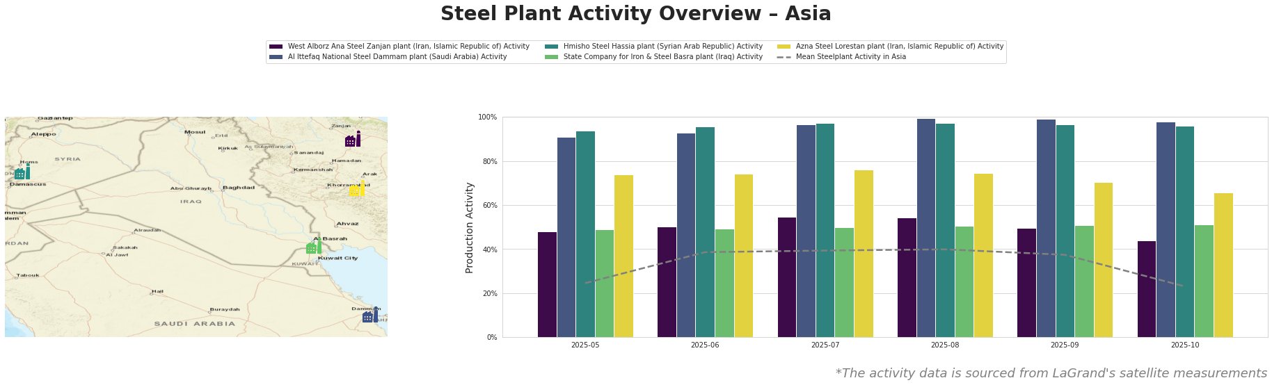 State Company for Iron & Steel Basra plant, an EAF-based facility with a smaller 500 ttpa capacity, displayed relatively stable activity levels around 49-51%. No direct link can be established between this steady activity and any specific news event.
