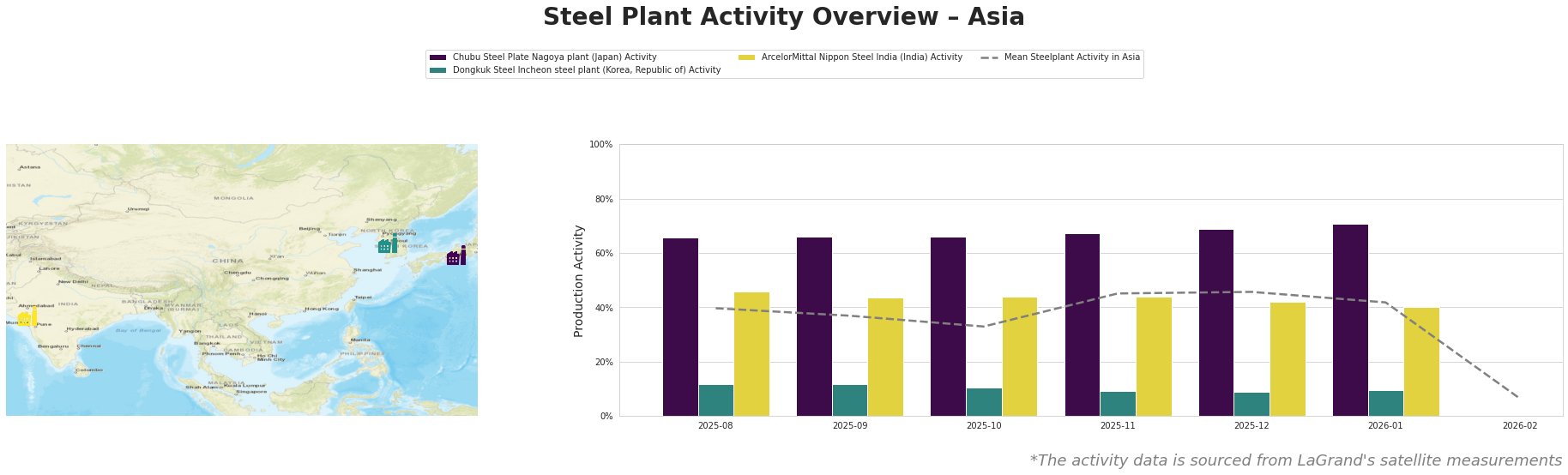 The steel market in Asia is experiencing a very positive sentiment driven by significant developments, notably the “India, EU Sign Historic Free Trade Agreement: Auto To Agri Food Tariffs — Here Are Five Key Highlights” and “The EU and India have agreed on a historic trade deal.” This trade agreement, effective from January 2026, is anticipated to drastically enhance trade relations, influencing steel production and supply dynamics in India, particularly as activity levels at ArcelorMittal Nippon Steel India decrease from 46% to 40% in January. Meanwhile, Chubu Steel Plate Nagoya plant shows resilience, increasing operations from 66% to 71% in January.