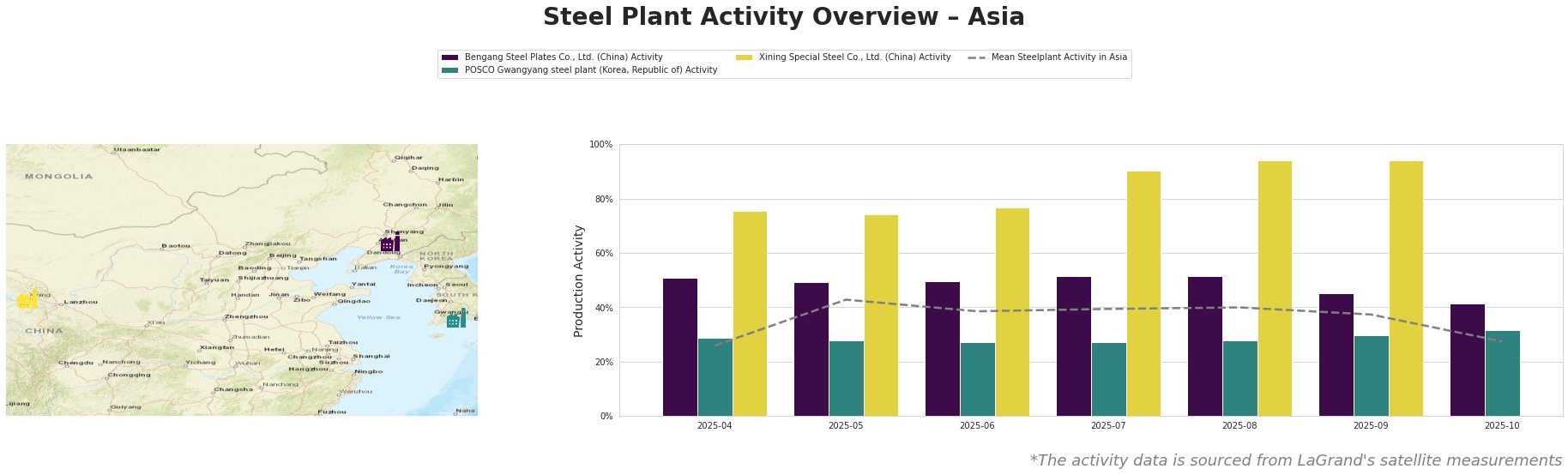 Overall, the mean steel plant activity in Asia showed a decrease in October to 27.0, a drop from 37.0 in September.