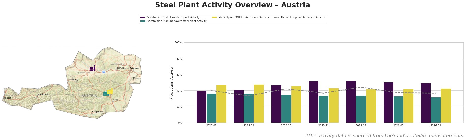 Bar chart and satellite map of steel production activity in Austria