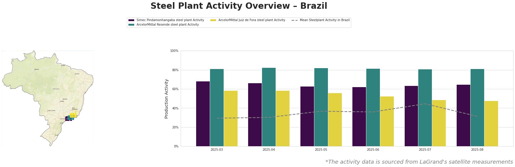 Monthly activity levels across selected steel plants in Brazil are as follows: