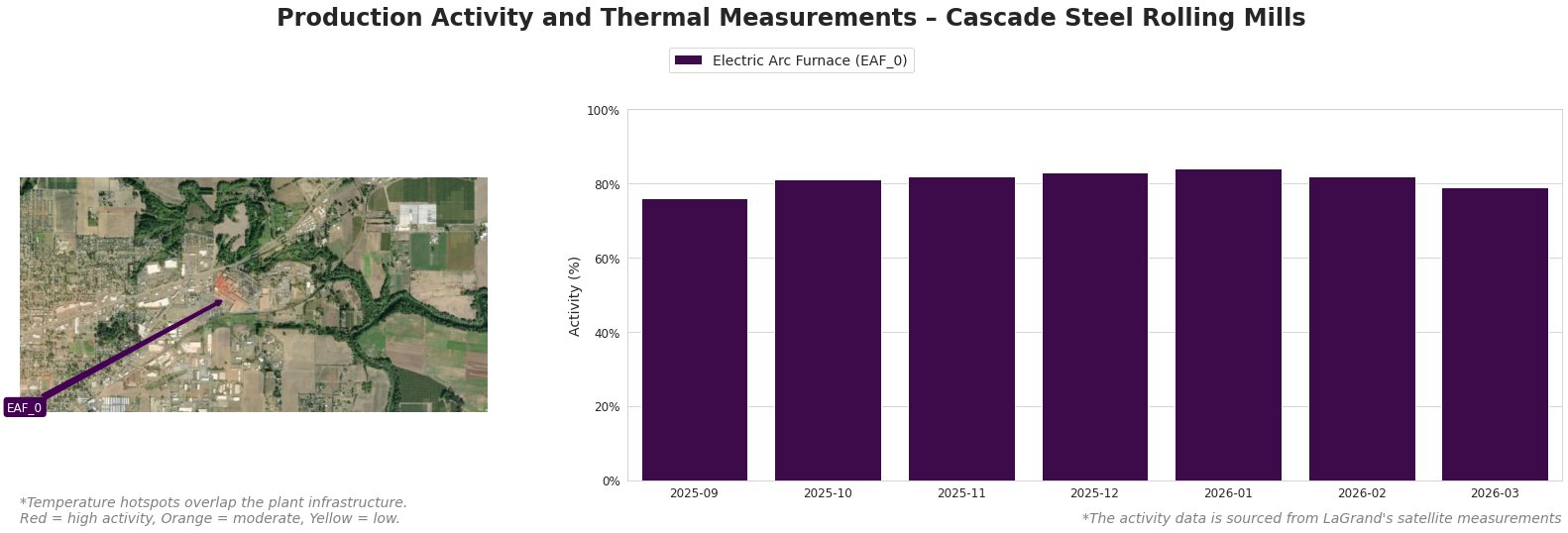 Recent thermal activity observations indicate a modest decrease in operations, with activity levels in the Electric Arc Furnace (EAF_1) fluctuating over the past months. Notably, activity peaked at 84% in January 2026 but decreased to 79% by March 2026. This overall activity change constitutes a 4.50% decline, illuminating ongoing challenges amid generally stable demand in the market.