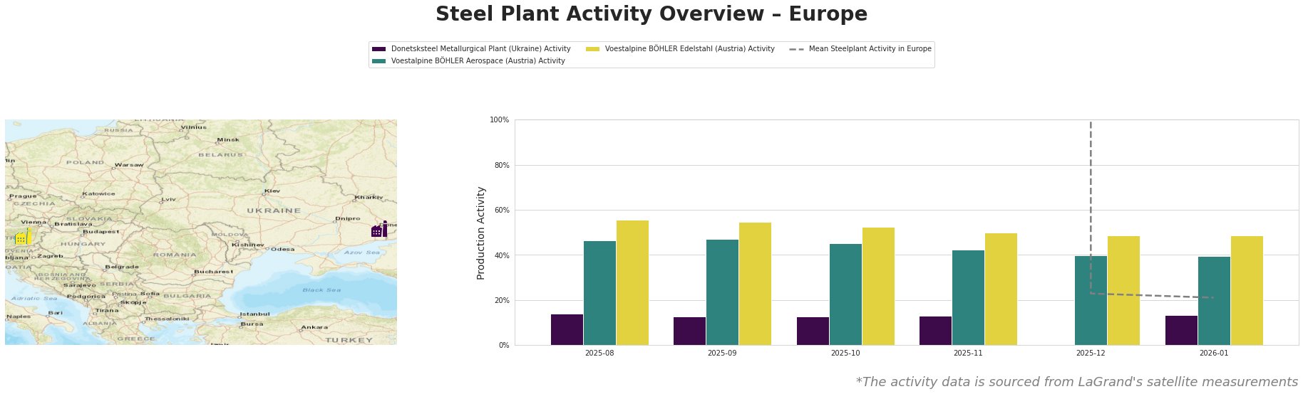 Across the observed European plants, a notable deterioration in activity is alarming. The mean steel plant activity has plummeted, particularly in December 2025 where it reached a mere 23%. The Donetsksteel Metallurgical Plant has also stagnated at 13% through the latter months without significant improvement. In contrast, Voestalpine BÖHLER Aerospace and Voestalpine BÖHLER Edelstahl show only mild declines but still operate far below optimal capacity, reinforcing the notion of market weakness.