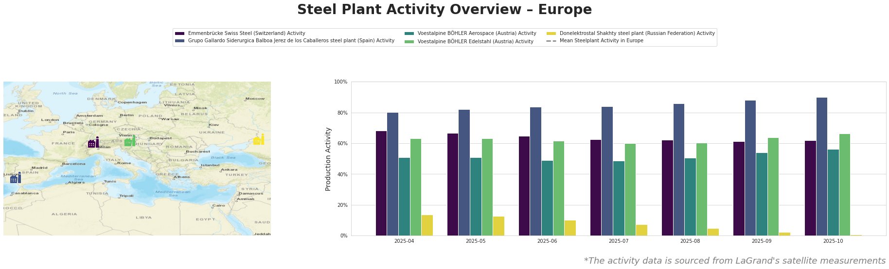 The observed decline in activity at Donelektrostal Shakhty, if sustained, could create localized supply constraints. Steel buyers reliant on this plant should explore alternative suppliers, particularly within Europe, to mitigate potential disruptions. Monitor activity trends at Grupo Gallardo Siderurgica Balboa Jerez de los Caballeros steel plant, due to the constant raise in activity.