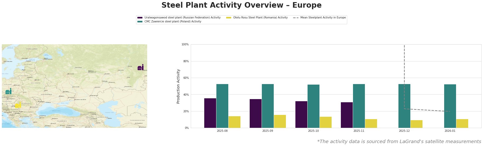 Satellite data highlight the following recent trends within key plants across Europe: