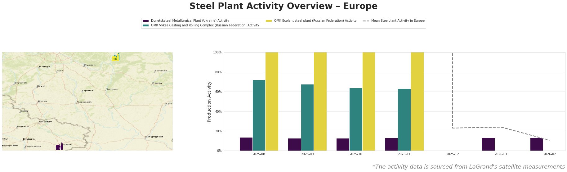 In Europe, particularly in Ukraine, the steel market is experiencing notable disruptions as evidenced by recent production reports, particularly “Zaporizhstal reduced steel production by 15.8% m/m in January” and “Industrial production in Ukraine fell by 2.4% y/y in 2025.” These developments correlate with reduced activity levels at key plants as assessed through satellite data, indicating broader implications for buyers and analysts.