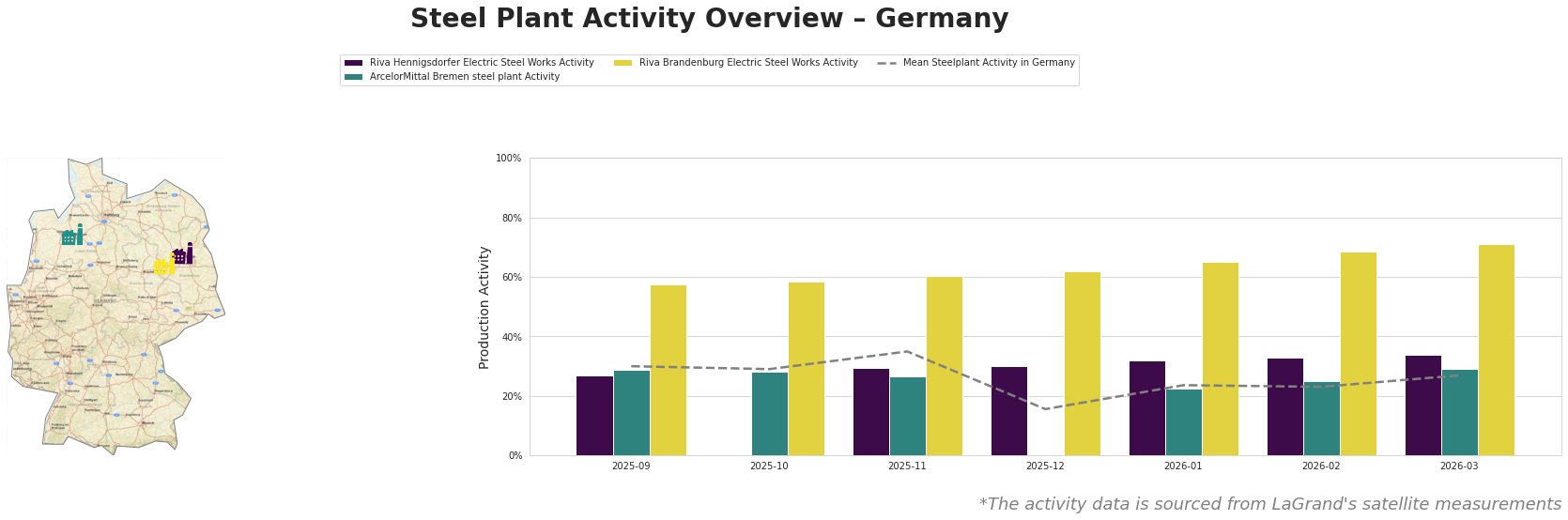 Riva Brandenburg Electric Steel Works continues to demonstrate resilience with activity escalating to 71% in March; however, earlier drops to as low as 60% raise concerns regarding its operational consistency amidst a broader systemic decline.