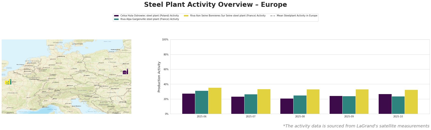Recommended Procurement Action: Steel buyers should closely monitor Celsa Huta Ostrowiec’s production and consider diversifying rebar sourcing options in Central/Eastern Europe to mitigate potential supply risks. Negotiate long-term contracts with Riva Alpa Gargenville and Riva Iton Seine Bonnieres Sur Seine to secure supply, considering their stable, above-average activity levels.