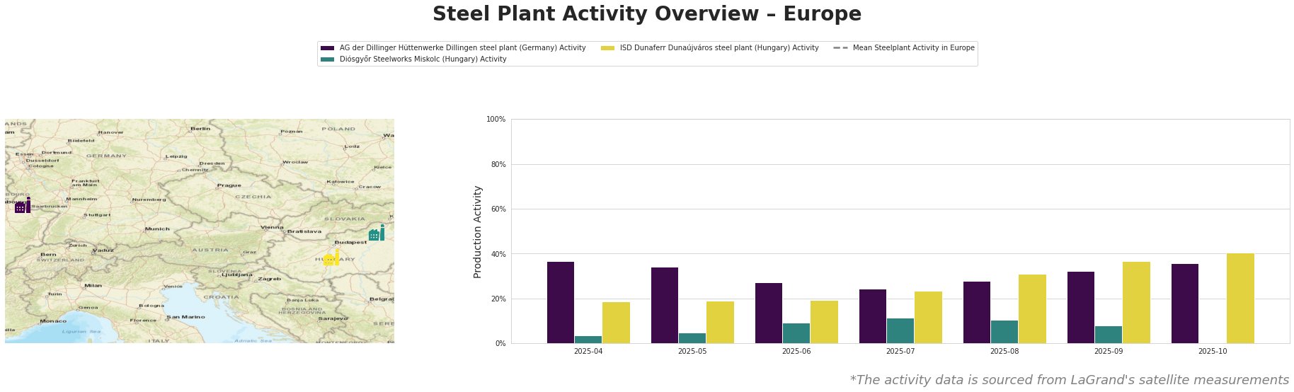 ISD Dunaferr Dunaújváros steel plant, another Hungarian integrated BF-BOF plant, showed a steady increase in activity from 19% in April to 40% in October. Similar to AG der Dillinger Hüttenwerke, no direct connection to the provided news articles can be established.