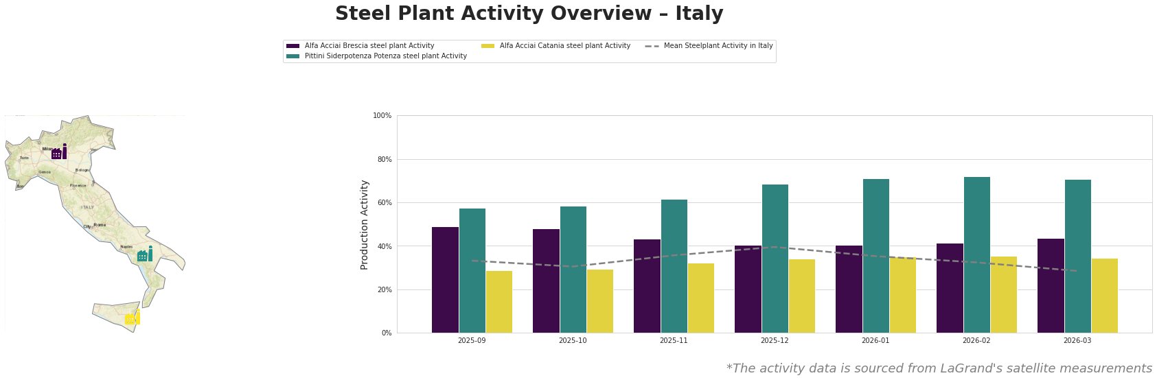 Recent satellite data reveals a drastic decline in overall activity, with a drop to 28.0% mean activity level by March 2026, reflecting stagnation despite previous peaks. This decline aligns with challenges in demand as noted in the articles. Notably, while Pittini Siderpotenza showed relative strength with a peak of 72.0% in February 2026, it too succumbed to a downward trend by March, corroborating insights from “European longs market ‘tense and static’” regarding subdued demand impacting operational viability.