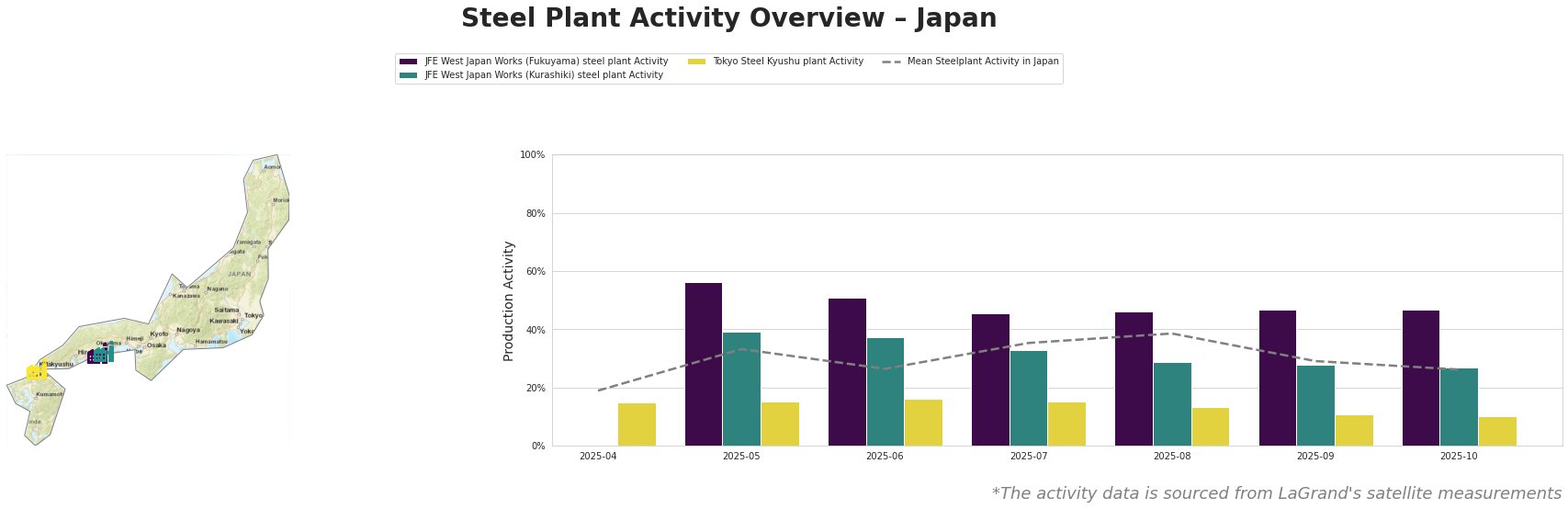 Conversely, the Tokyo Steel Kyushu plant saw a consistent decline in activity, dropping from 15.0% in April to 10.0% in October. The lack of strategic investment or technological upgrades is evident as this plant appears to be lagging behind its competitors.