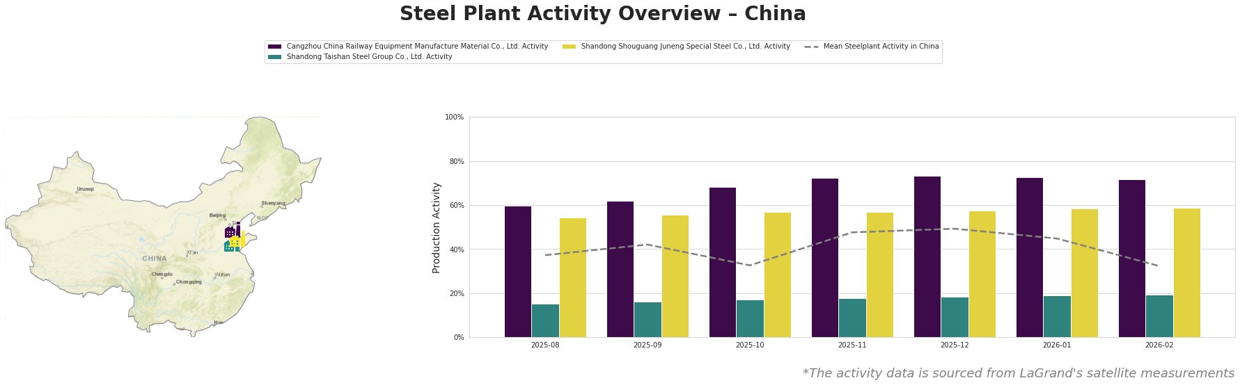 The recent satellite-observed activity at key steel plants corroborates a troubling trend. The Cangzhou China Railway Equipment Manufacture Material Co., Ltd. exhibited a minor reduction in activity, stabilizing at 72% in February from 73% in December; this plant remains well above the national average of 32%. Shandong Taishan Steel Group Co., Ltd. demonstrated a significant decline to 16% in activity from 19%, indicating deeper operational challenges. Conversely, Shandong Shouguang Juneng Special Steel Co., Ltd. has remained stable, recorded at 59%, but is still impacted by the prevailing negative sentiment in the sector.