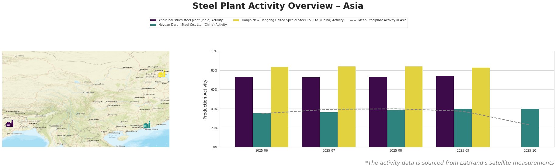 Recent satellite data reveals that the Tianjin New Tiangang United Special Steel Co., Ltd. maintained high activity levels around 83-84% until October 2025 but saw operations taper off significantly to a mean of 23% by October 31st, aligning with the decline in overall crude steel production in China attributed to “China cut steel production to a two-year low in November.” Conversely, both the Atibir Industries steel plant and Heyuan Derun Steel Co., Ltd. have maintained relatively stable activity levels above 70%, reflective of their robust operational strategies amidst regulatory pressures. No explicit connections can be established for the decline in activity at Heyuan Derun, suggesting internal factors may be at play as China’s new export regulations come into effect.