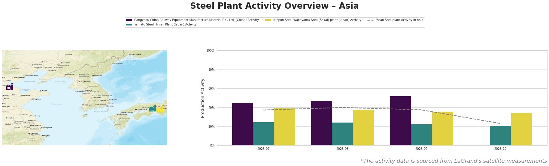 Cangzhou China Railway Equipment Manufacture Material Co. has seen fluctuating activity levels, peaking at 52% in September 2025, aligning with overall mean activity trends. In contrast, Yamato Steel exhibited a decline to 21% in October, significantly lower than the mean, indicating potential export challenges or domestic demand fluctuations. Nippon Steel’s activity maintained relative stability, albeit on a downward trajectory towards 36%. No news directly correlating with these shifts was identified.
