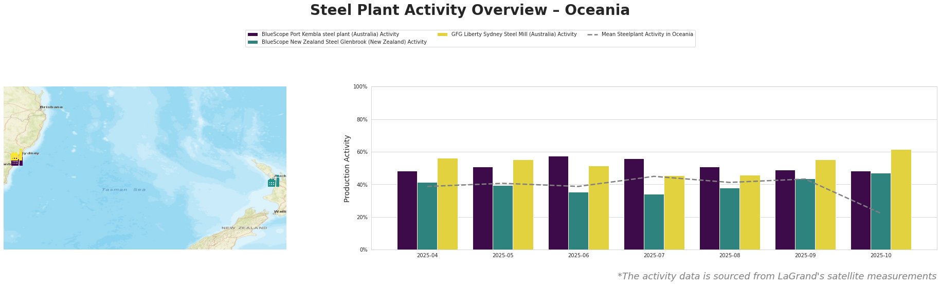 The mean steel plant activity in Oceania experienced a significant drop in October, falling to 22% from 43% in September.