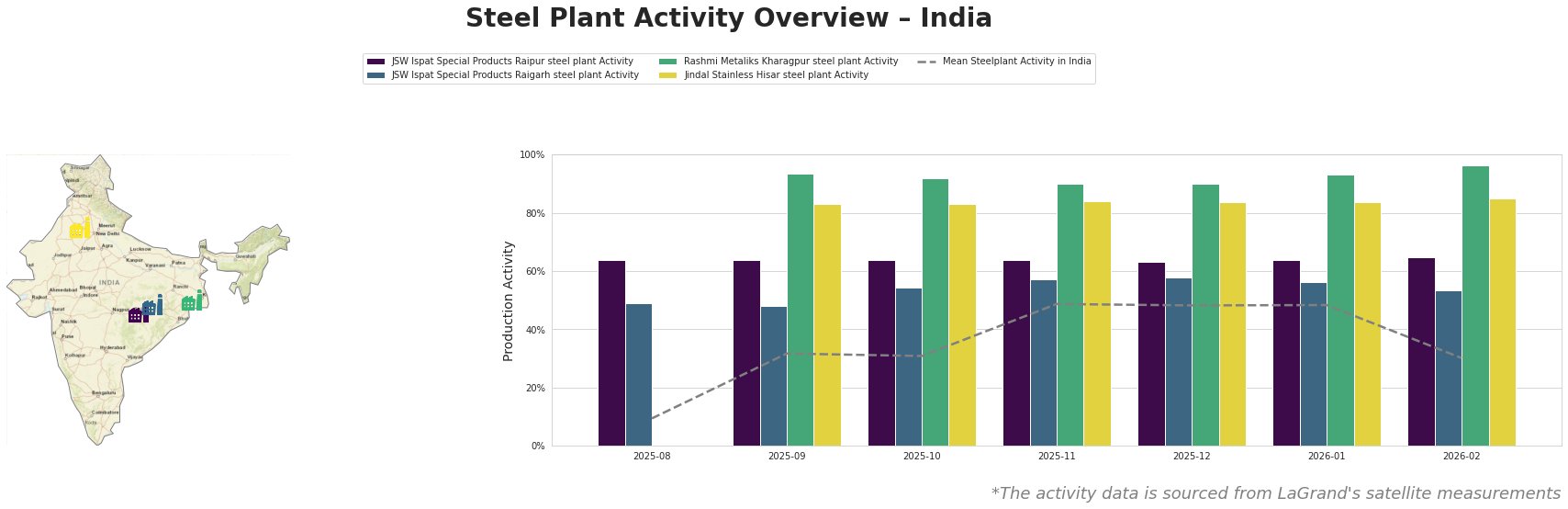 Recent data shows significant activity levels at JSW Ispat Special Products Raipur and Raigarh steel plants, with a notable increase for Raipur to 65.0% in February 2026. Rashmi Metaliks Kharagpur exhibited robust performance peaking at 96.0%. Although the mean activity did decline to 30.0% in February, specific plants are indicating upward trends, particularly JSW Ispat Special Products.