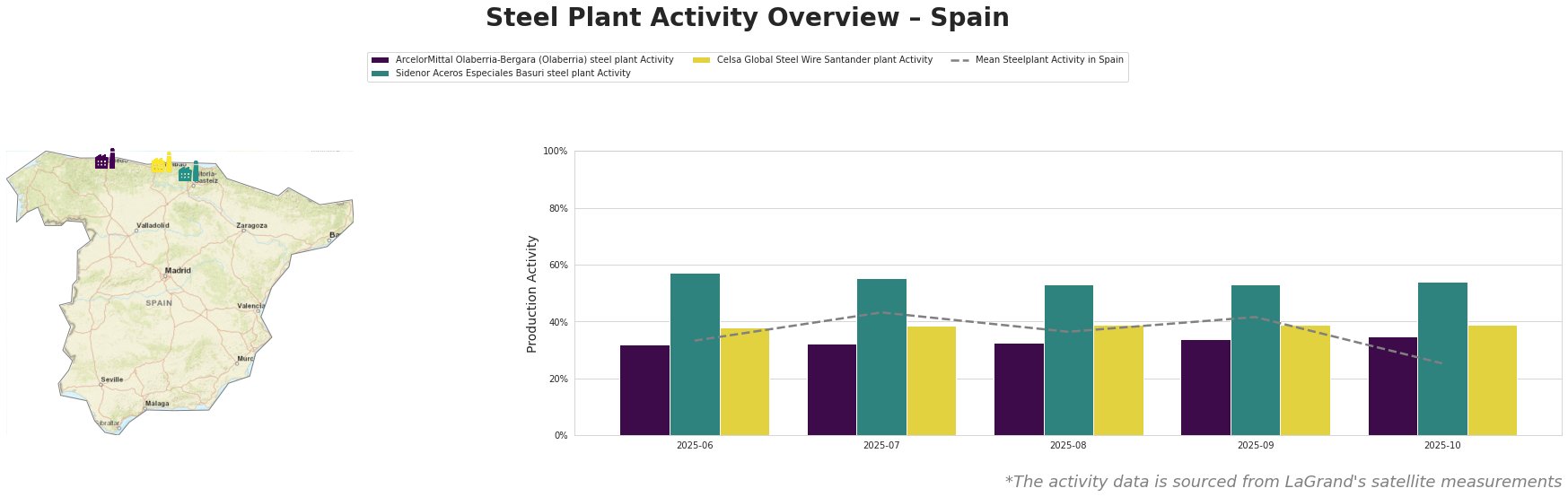 Recent satellite data indicates the following activity levels for key steel plants in Spain: