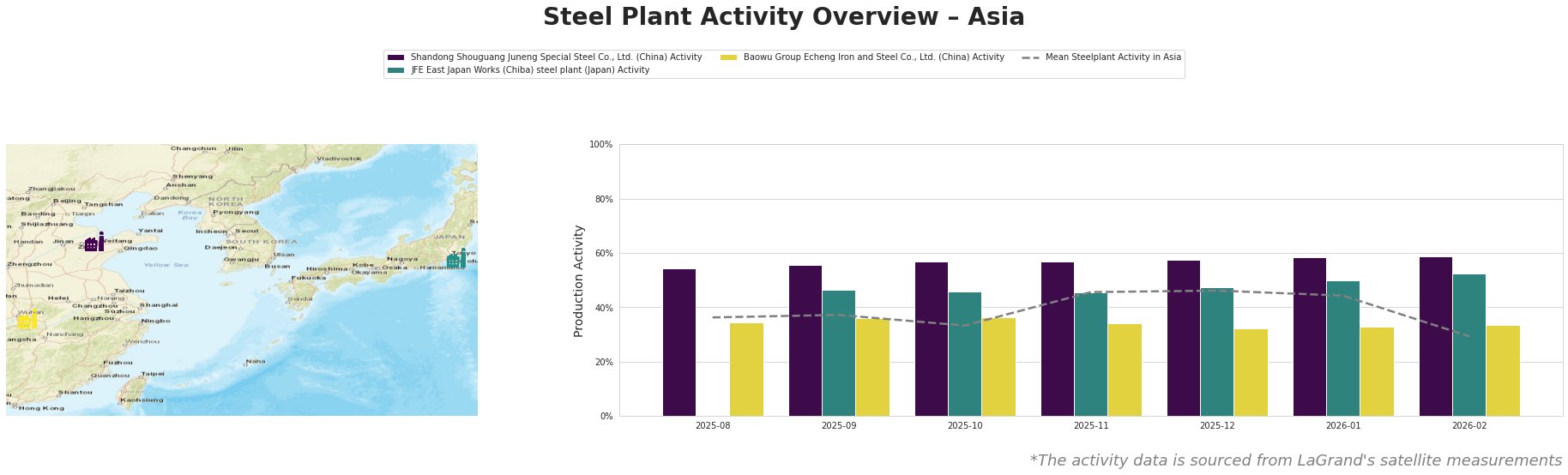 In comparison, JFE East Japan Works (Chiba) maintained high activity levels, peaking at 52.0% as of February 2026. This stability aligns with the upbeat market sentiment as rising demand in infrastructure and automotive sectors increases this plant’s output. The Baowu Group Echeng Iron and Steel Co., Ltd. however, observed a downturn to 34.0% by February 2026, a notable drop after a peak of 50.0% in January. This decline may reflect a supply timing issue or market adjustment, albeit no explicit connections to current news were established.
