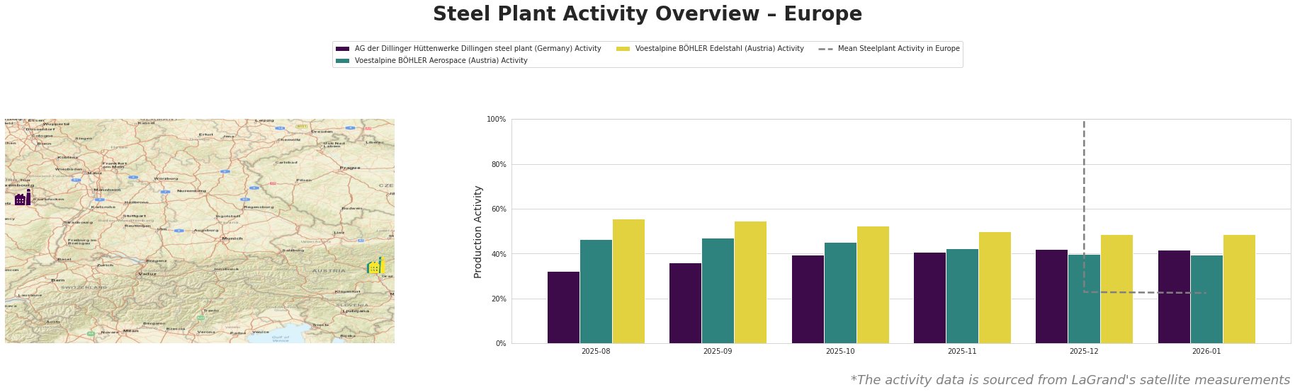 AG der Dillinger Hüttenwerke Dillingen steel plant in Germany showed a gradual increase in activity from 32% in August to 42% by December 2025, aligning with reports of increasing operational efficiency amidst declining production trends as noted in “Germany sees another year of declining steel production.” This operational improvement is particularly crucial given the plant’s focus on high-value product categories like heavy-plate and high-strength steels, supporting demand in automotive and infrastructure sectors.