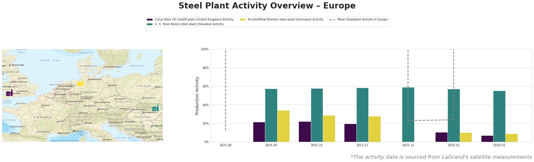 Celsa Steel UK Cardiff plant observed a notable drop to 7% activity in December 2025, which aligns with the “UK’s TRA amends TRQ for merchant bars, sections” article indicating the cessation of production of comparable goods by local competitors. The U.S. Steel Košice plant showcases resilience with activity peaking at 58%, following ongoing demand in automotive and construction sectors. ArcelorMittal Bremen, however, has faced relative declines recently, suggesting market adjustments in output strategies impacted by TRA decisions.