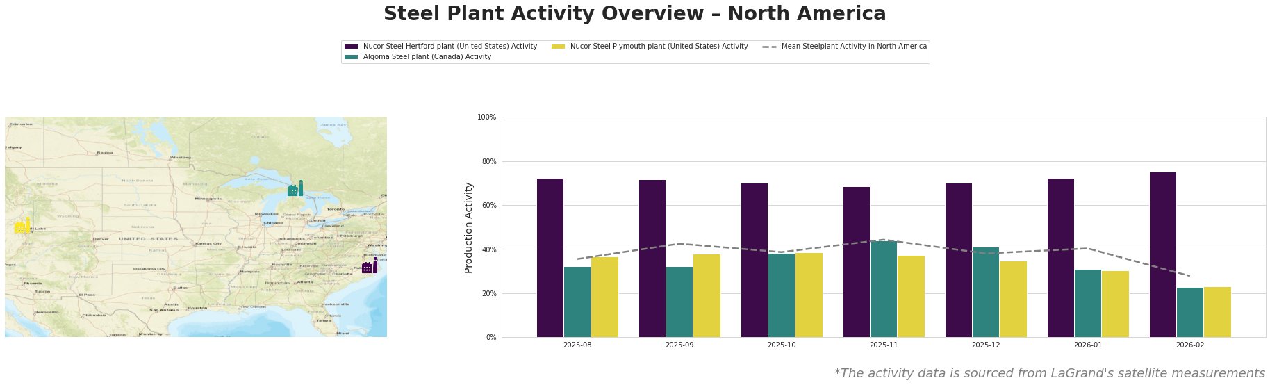 Recent developments in North America’s steel market indicate a positive trend, bolstered by the U.S. Supreme Court’s ruling on February 19, 2026, where it struck down Trump’s tariffs (US Supreme Court strikes down Trump’s tariffs) under the IEEPA. This decision is expected to reduce trade tensions, improve economic conditions, and may influence future steel production dynamics, as indicated by investors cheering Supreme Court’s decision to strike down Trump’s tariffs. These articles correlate with notable changes in satellite-observed activity levels across several key steel plants in North America.