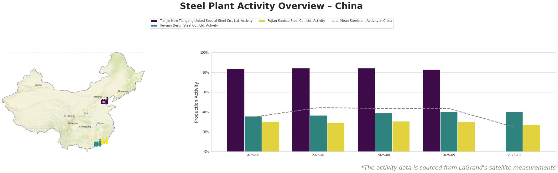 Given these dynamics, steel buyers should consider procurement strategies that emphasize flexibility, especially with the anticipated regulatory shifts impacting exports from China. It may also be prudent to establish firm contractual obligations with suppliers to hedge against potential supply disruptions from plants demonstrating significant activity fluctuations, specifically Tianjin New Tiangang and Fujian Sanbao. Monitoring these developments closely will be essential in navigating the evolving landscape, ensuring procurement teams remain agile and proactive.