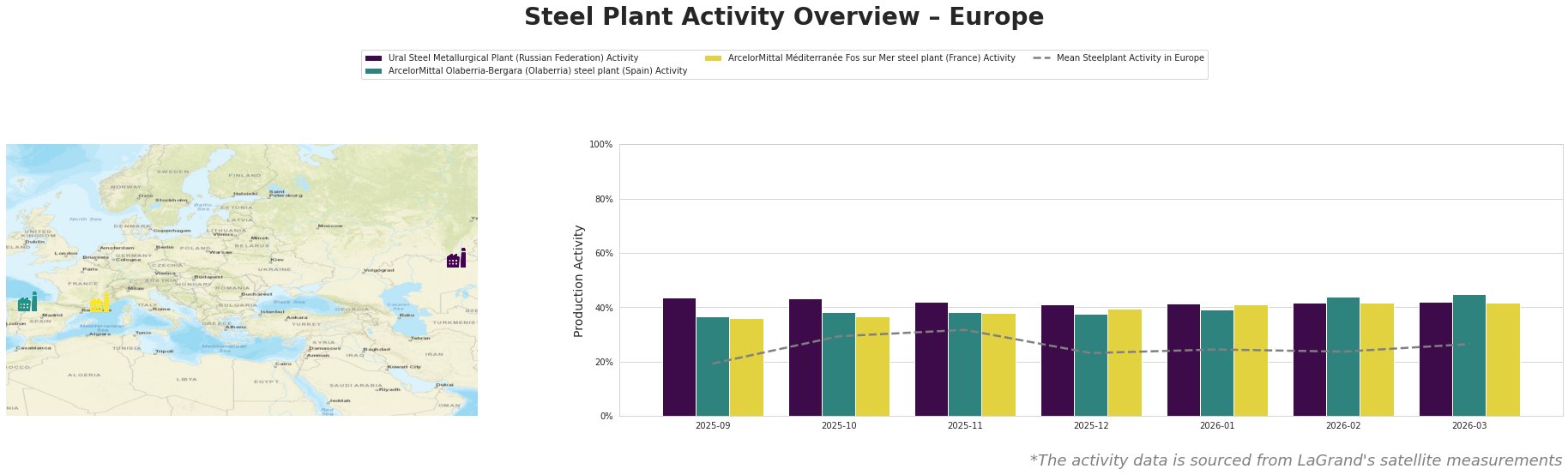 In this context, ArcelorMittal Méditerranée plans to increase operations at Fos-sur-Mer, transitioning from 36% to 45% activity in the following months, primarily influenced by the expected stability in the EU regulatory framework, including the newly implemented Carbon Border Adjustment Mechanism (CBAM). The Olaberria plant has shown stable performance around the 38–44% range, contributing to the overall European mean activity, which has seen a noteworthy increase from 19% to a recent high of 32%.