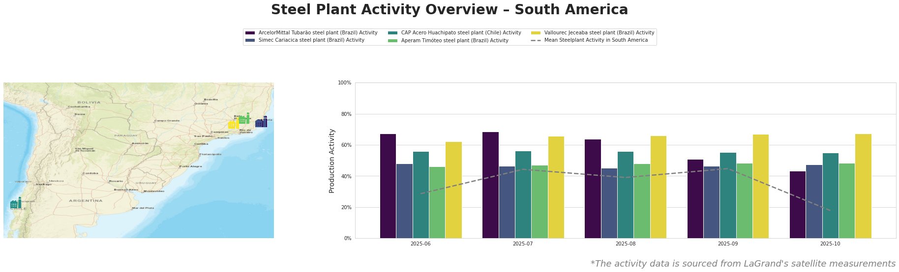 South America’s steel market shows a positive outlook, influenced by Brazil’s expanding LPG initiatives and evolving fossil fuel transition discussions. The “Brazil boosts payouts for new LPG scheme by 2.6pc” initiative may indirectly affect steel demand, while the broader implications of the “Fossil fuels shift talks to continue outside Cop” and its voluntary initiatives are yet to be fully reflected in steel plant activity. No direct connection between these news items and observed plant activity levels can be definitively established from the provided data.