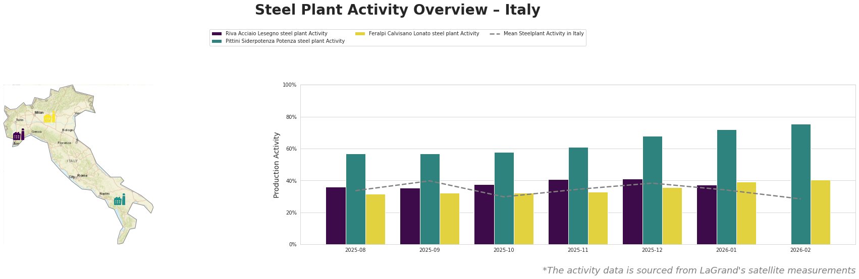 The Riva Acciaio Lesegno steel plant has demonstrated a slight reduction in activity from 41% in November 2025 to 37% in January 2026, reflecting a dip consistent with the negative outlook associated with ongoing disputes involving ArcelorMittal. Meanwhile, more resilience is noted at the Pittini Siderpotenza Potenza plant, which peaked at 76% in February 2026, despite the overall mean activity level declining to 28%. In contrast, the Feralpi Calvisano Lonato plant’s activity remained relatively stable, fluctuating between 32% and 39% over recent months.