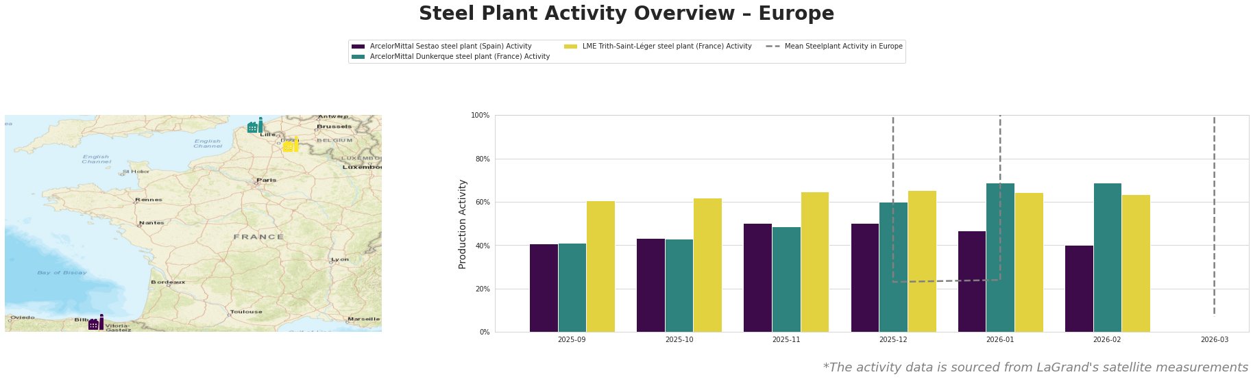 Recent activity trends show fluctuating production levels across key European plants. Notably, the ArcelorMittal Dunkerque plant saw a performance drop in January to 69%, a recovery to 69% again in February, directly aligning with ADI’s increased production activity as highlighted by the news articles concerning the restart of BF No. 2. The ArcelorMittal Sestao registered steady levels around 41% and 43%, closely tracking mean activity levels, while LME Trith-Saint-Léger peaked at 66% in December but showed diminished performance as observed in January and February.
