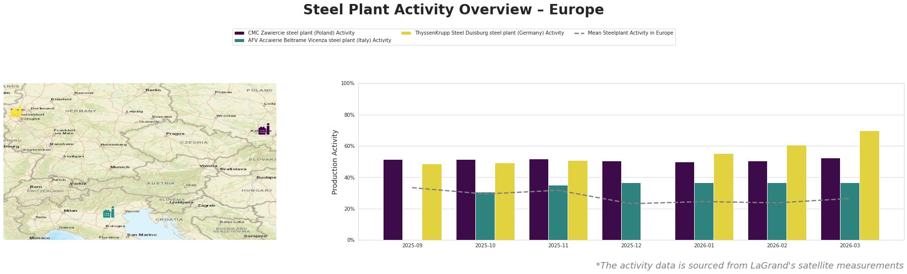 ThyssenKrupp Steel in Germany reached a notable activity peak of 70.0% in March 2026, showing robust recovery in production levels after a minimum of 49.0% in September 2025. This increase could be indirectly linked to the ongoing debates on ETS reforms discussed in “EU leaders debate energy, ETS reform,” as the enhancement of the ETS could drive demand for sustainable steel production.