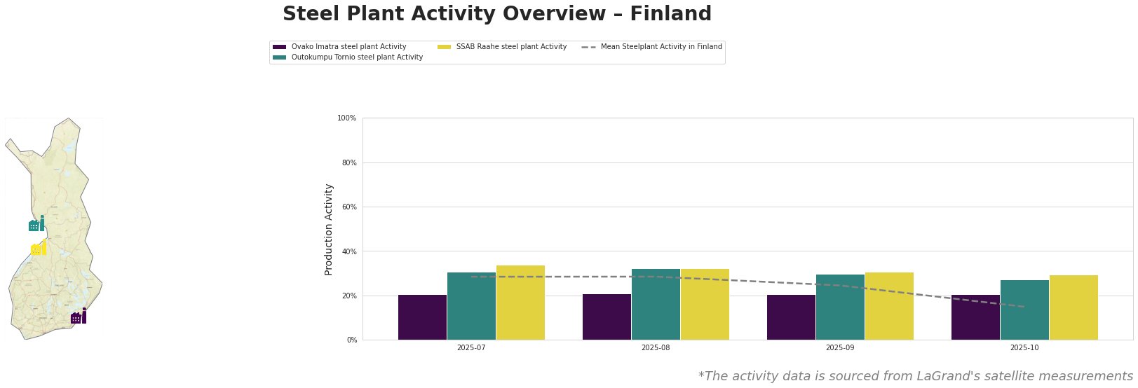 Recent satellite-observed activity data show varied activity levels from key steel plants in Finland for the months leading up to October 2025:
