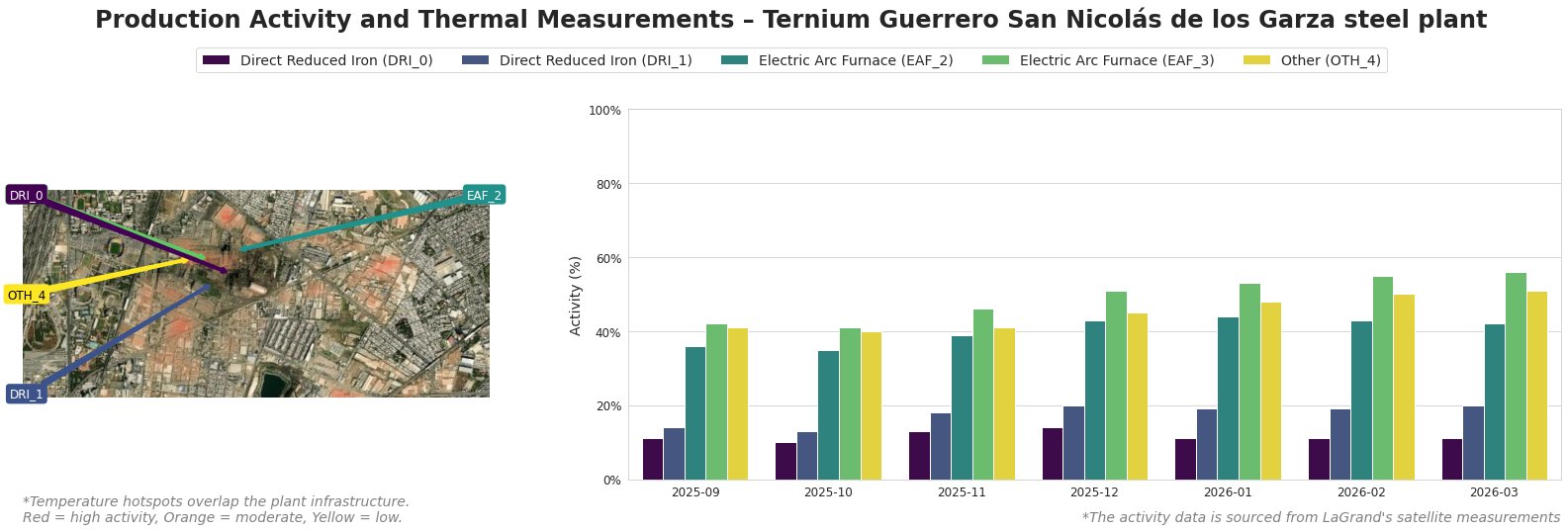 The Electric Arc Furnace (EAF_3) has shown a marked improvement, reaching 56.0% activity in March 2026, indicative of ramped-up production capabilities. This ongoing trend reflects strategic operational adjustments likely aimed at bolstering output as the Mexican steel market contends with tariffs and declining consumption.