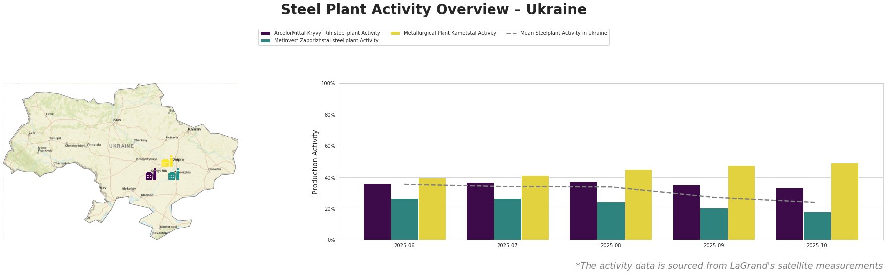 The activity levels across these plants exhibited notable increases, particularly in Metallurgical Plant Kametstal, which rose to 48% by September and peaked at 49% in October. Meanwhile, ArcelorMittal Kryvyi Rih maintained a relatively stable performance, reaching a high of 38% in August. In contrast, Metinvest Zaporizhstal experienced a significant drop to 21% in September, raising concerns that cannot be directly linked to the current government support efforts cited in “UK government confirms continued British Steel support”.